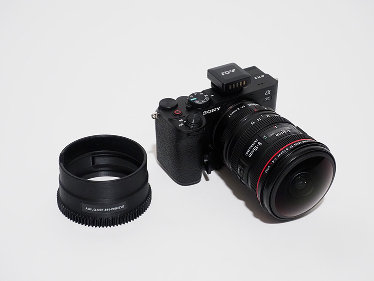 そこで、AOIではSONY A7CⅡ用の超広角システムとして、CANON EF 8-15mm F4L フィッシュアイUSMを採用した。このレンズは全長83mm・重量540gとコンパクトで持ち運びやすい。Metabones製電子マウントアダプターでEマウントボディに装着し、AOI DLP-104ポートと延長リングER-AX_AX-20を組み合わせる。フルフレーム・フィッシュアイ撮影システムとは思えないほどコンパクトで取り回しが良い。