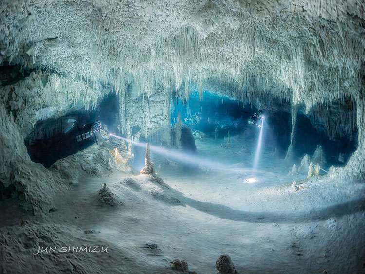 ここからは、“白いセノーテ”が持つ独特の美しさを描いていく。この作品は Sac Actun–Nohoch–Dos Ojos 水系に属する Fenomeno で撮影したものだ。白い鍾乳洞が連なっているのが、このセノーテが属する水系の大きな特徴だ。