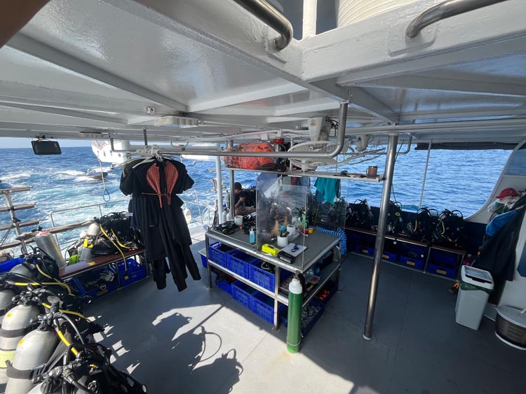 整えられたダイビングデッキ。ここから小ボートに乗ってポイントへ向かう