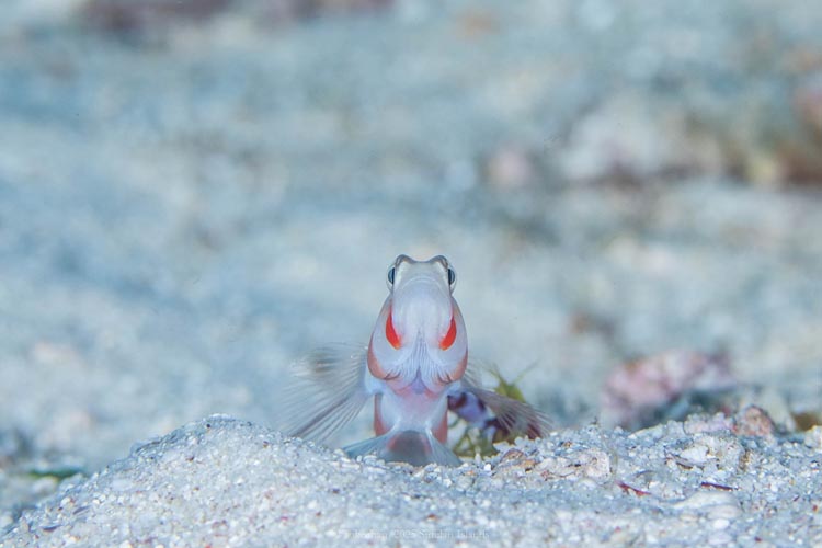 まずは個人的に大好きなカエルウオのルボックスブレニーです。イシガキカエルウオとかなり似ているのですが、真上から見ると口があって顔みたいに見えるのが特徴的でした。カエルウオは表情が豊かなのでついつい正面から撮りたくなりますが、今回は真上からも撮影しました。