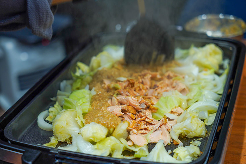 寄り道をしながらも無事にコテージに到着。コテージは屈斜路湖のすぐ脇にあった。調達した食材を使って料理を開始。第1話、広島編でも料理に腕を振るっていただいた鍵井さん。今回も、手際よく料理を開始。ジンギスカンに合わせる野菜を切り、タレのついたお肉と炒めていく。あとは、道の駅で買ったキンキの一夜干しをじっくりと焼くだけ。