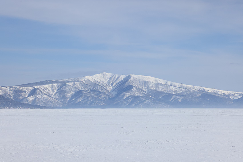 知床半島の玄関口・女満別空港に到着する前、飛行機の窓越しにはすでに一面の雪景色が広がっていた。広大な大地を見ているうちに、どこか遠い海外の地に来ているのではと錯覚を覚える。空港で先に到着していた鍵井さんと合流し、早速知床へと車を走らせる。