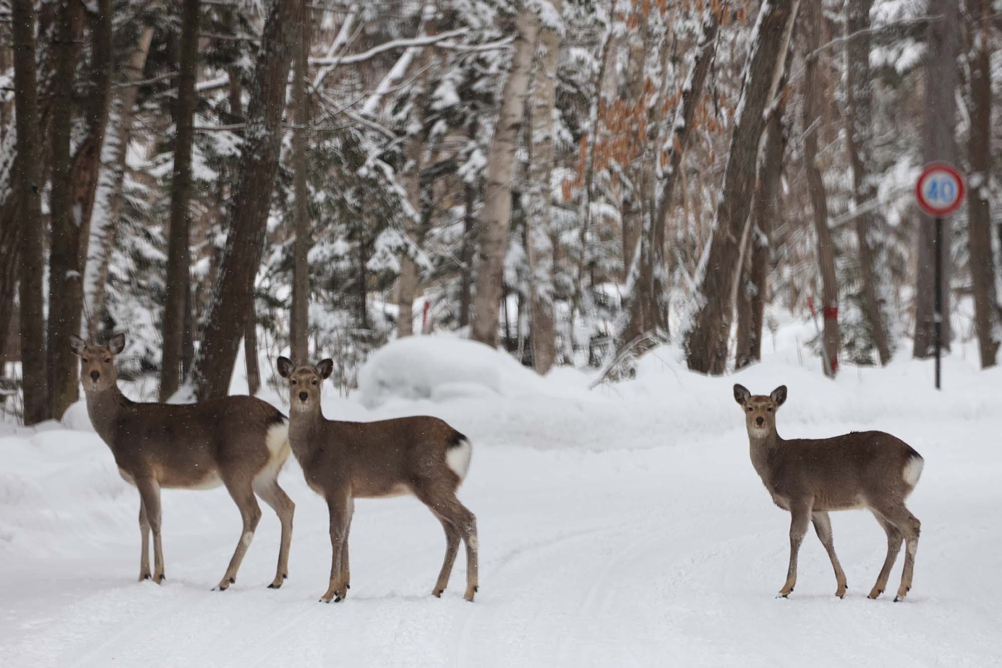 と、車を走らせていると、ここでもエゾジカのご一向に遭遇。車を見ても驚かず、ジーとこちらを観察。第1話の取材で行った広島・宮島で出会った鹿より、格段に大きかった。北海道は動物も土地も、何もかもまるでスケールが違う。別の国に来ているような感覚だ。