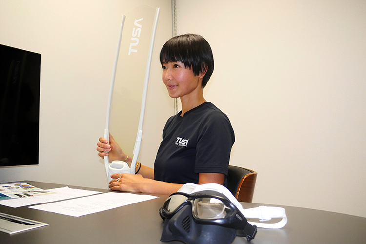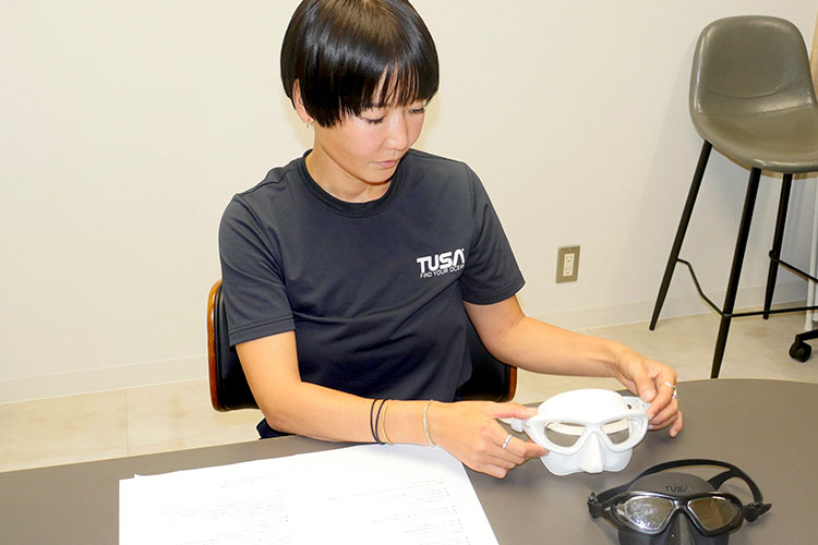 プール競技を始めてすぐの頃から使わせていただいていて、前のモデルの時代からずっとなのでかなり長いお付き合いになります。今でも前のモデルも使っていますが、今年の和歌山大会で269m日本記録を出したときは、現行のTUSA Sport「Lapisマスク」を使っていました。